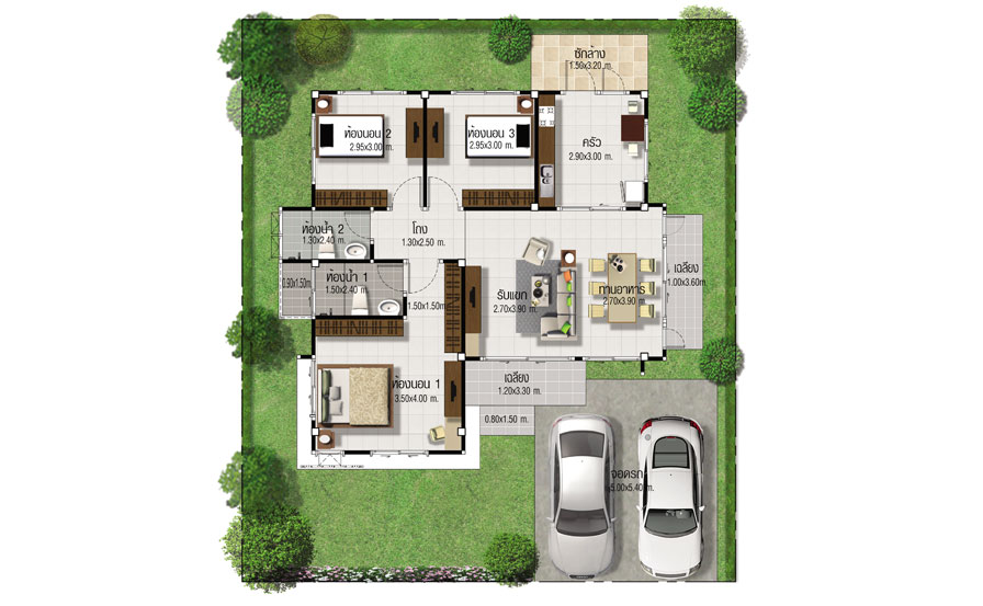 | ห้องนอน | : | 3 ห้อง |